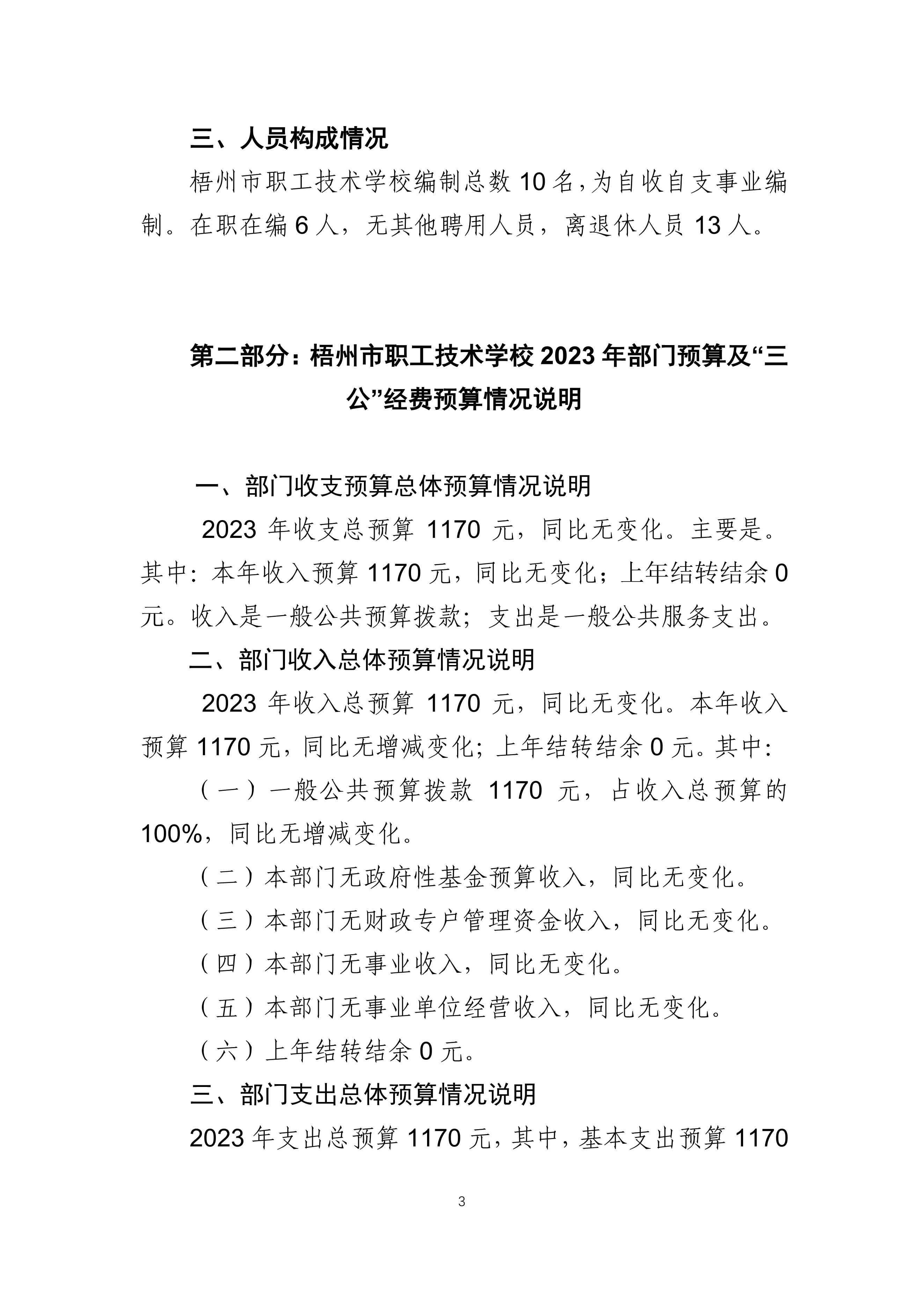 梧州市職工技術(shù)學(xué)校2023年度部門預(yù)算及”三公“經(jīng)費(fèi)預(yù)算情況說明