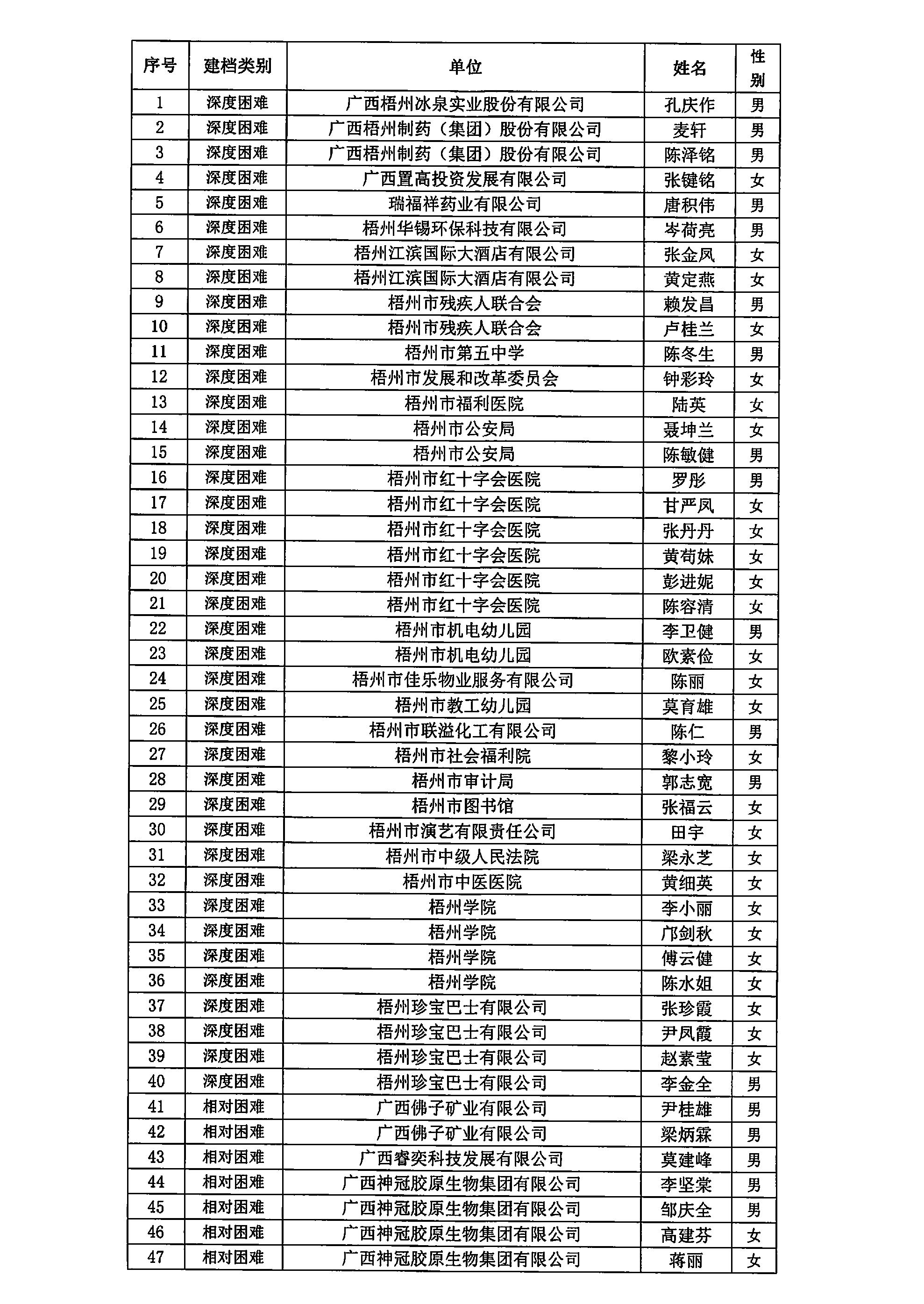 困難職工公示