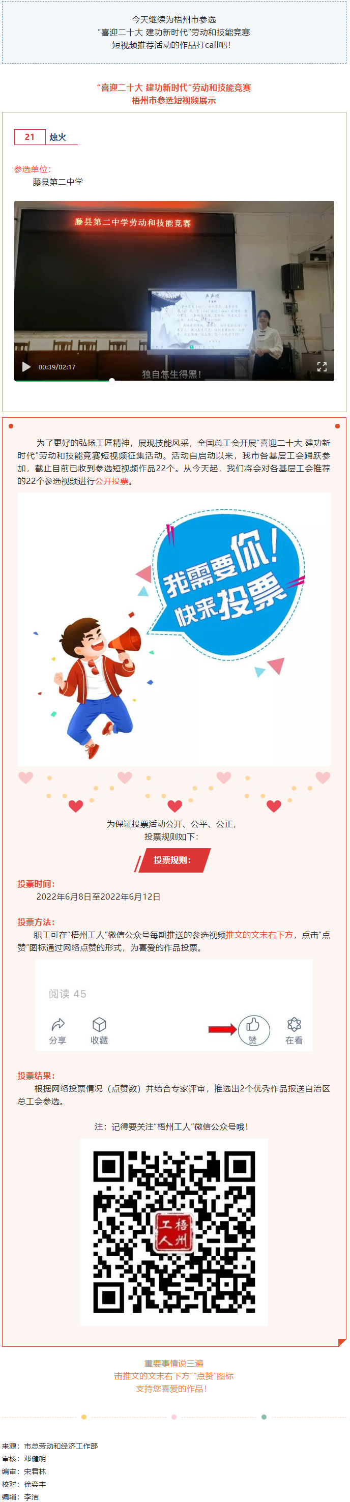 藤縣第二中學(xué)參選作品丨“喜迎二十大 建功新時代” 勞動和技能競賽短視頻投票活動開始啦!