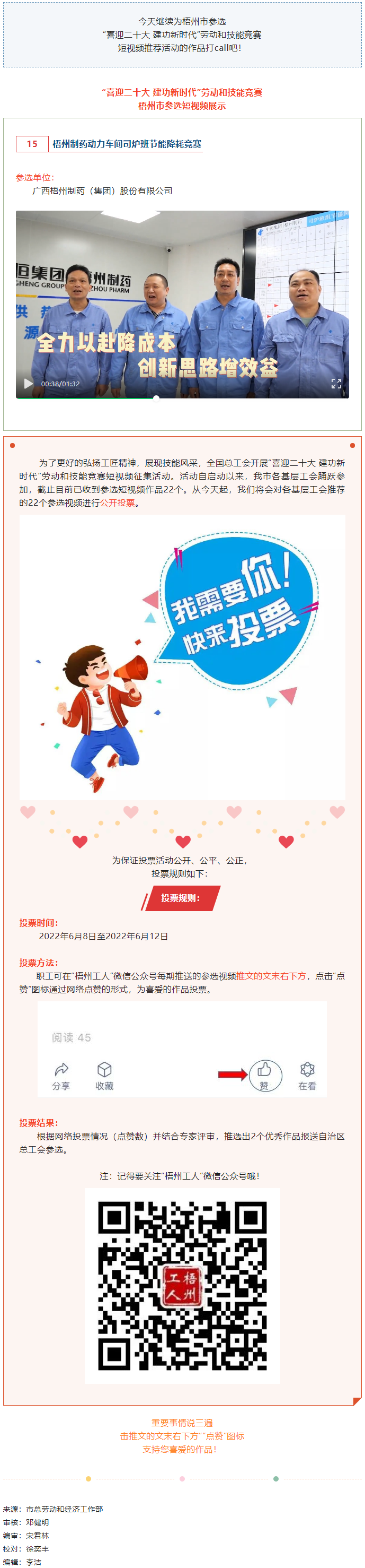 廣西梧州制藥(集團)股份有限公司參選作品丨“喜迎二十大 建功新時代” 勞動和技能競賽短視頻投票活動開始啦!