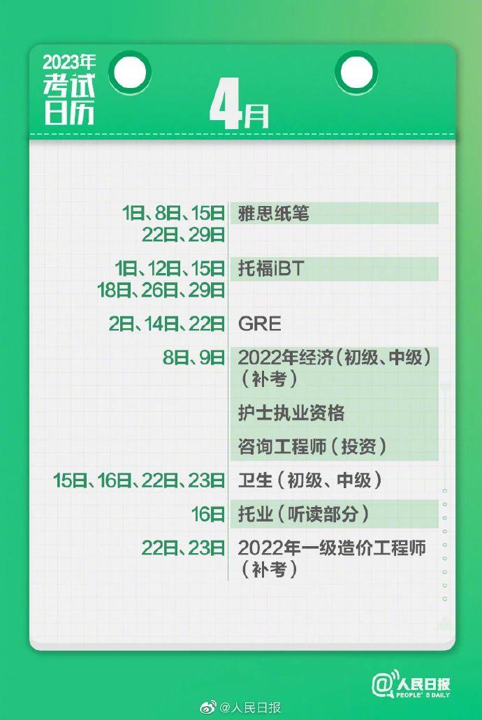 收藏!2023年考試日歷來(lái)了