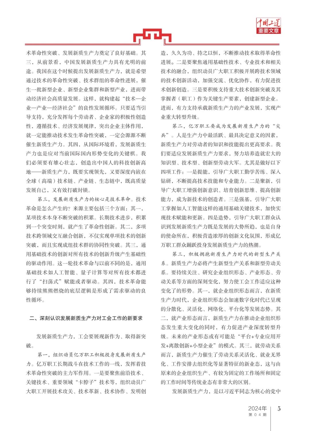 二、深刻認(rèn)識(shí)發(fā)展新質(zhì)生產(chǎn)力對(duì)工會(huì)工作的新要求